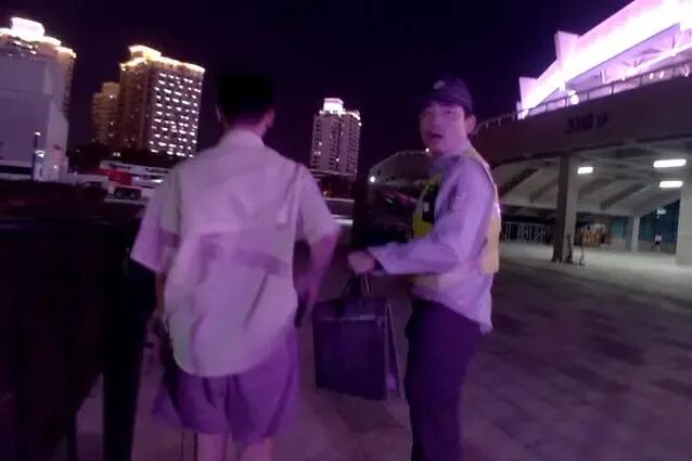 10月9日晚,上海体育场,刘某推人进场失败后欲逃离现场。本文图片均由 上海徐汇警方 提供