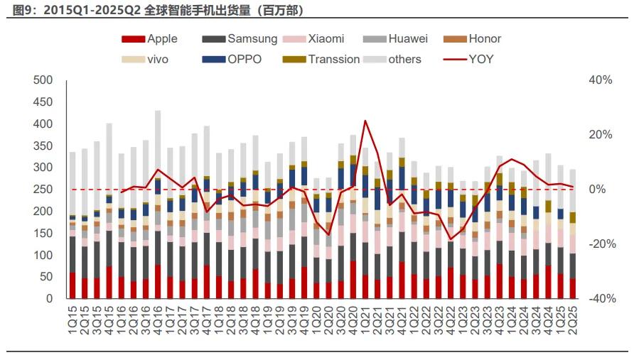今年最大的变化是新机型iPhone17Air,其替代了推出多年的Plus机型,主打轻薄设计,并或将在大部分市场取消SIM卡槽设计,该机型可能会引领智能手机市场再度回归轻薄设计的路线,并推动中国三大运营商对于现有eSIM业务的改革,全面加速无卡化进程。而从未来三年产品规划来看,苹果或将开启新一轮产品创新周期。