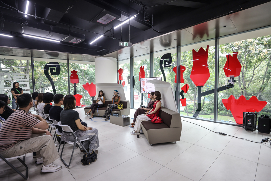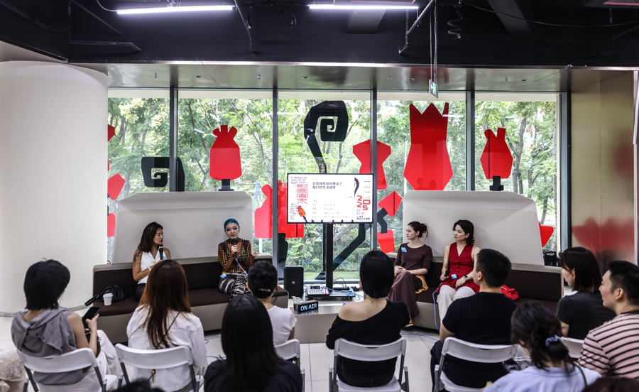 10月13日下午,在“崭新旧时光”论坛空间,主办方首度联合小宇宙App,邀请竹子、沸沸、洛怀、七七多位播客博主围绕“日常穿搭如何预设生活选择”展开讨论;示場主理人蒋姗姗与独立设计师深度探讨“审美重要吗”这一有趣话题,透过与众不同的视角解读时尚审美。