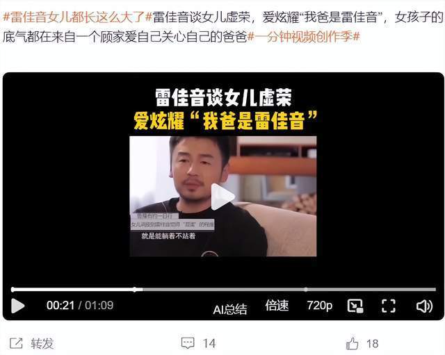 在之前的采访中,雷佳音曾提到自己的女儿,他表示:所有人看到自己的女儿都会说:太像你了,雷佳音,当时大家都认为长相像雷佳音,万万没想到是性格像,雷佳音女儿非常“皮”,性格真的太好玩了,他希望有机会可以带着孩子参与录制综艺,但始终都没有太合适的机会。